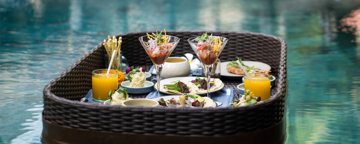 Complete your journey at Blue Karma Hotel Seminyak with an amazing selection of meals right away at your own pool. Experience floating dining with signature menu from our culinary team.