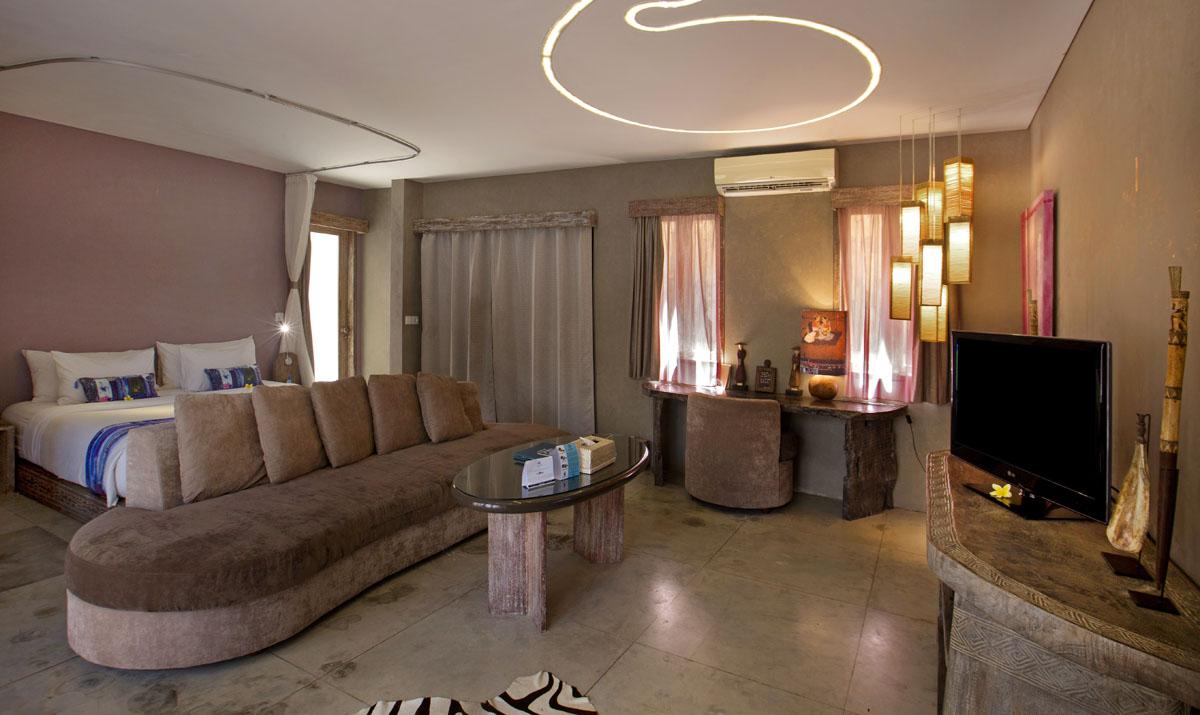 Located on ground floor, 56 M2, features king or twin bed, couches, TV, DVD plyer, minibar, safety box, tea/coffee making facilities